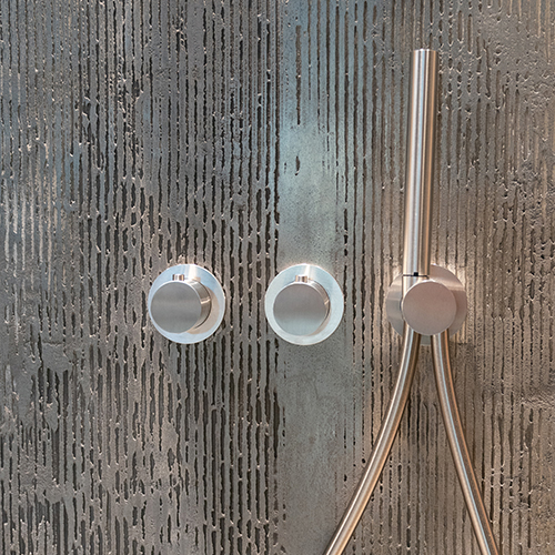 Die besonderen Wandoberflächen lassen kaum Wünsche offen: Wir haben mit dem Material von murface etliche Möglichkeiten. Wir können Struktur auf die Wand bringen, wasserdicht im Nassbereich arbeiten, Materialien wie Glas mit einarbeiten oder aber mit goldenem Glanz veredeln.