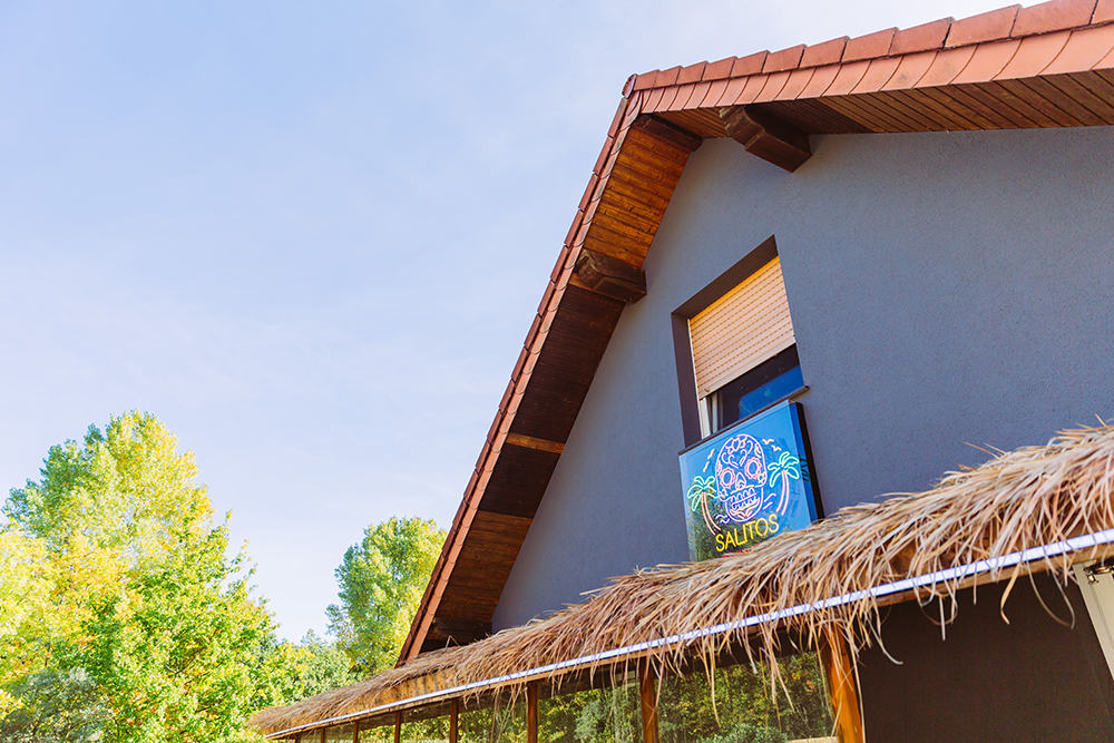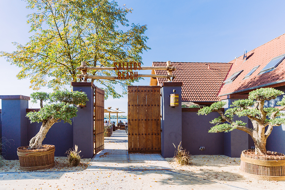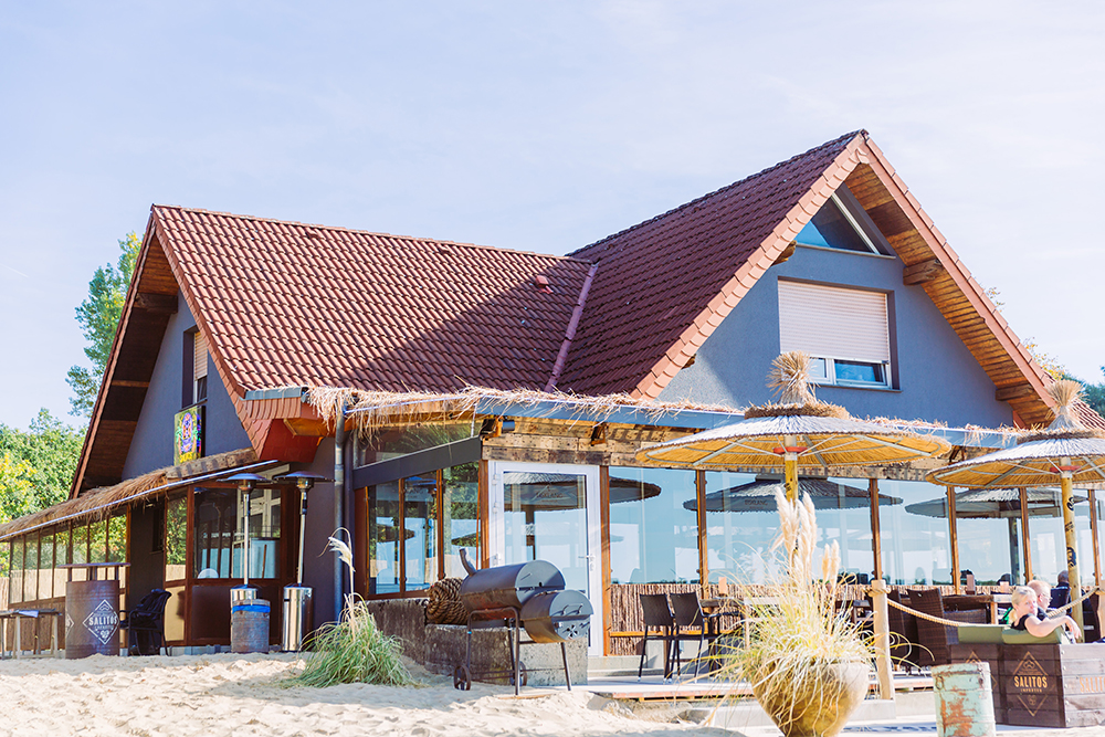 SALITOS BEACH ist ein beliebtes Ausflugsziel am Lippesee. Das Haus und die Mauer haben wir modern in dunkelgrau gestaltet. So sieht das Haus aus, als wäre es direkt aus den Hamptons hier her importiert.